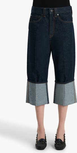 Low-slung and relaxed, these runway-featured jeans cut from rigid denim are all about proportion, with a dropped waist and wide cuffs pressed to stay sharp. Undo the cuff and the length is designed to fall at the ankle, while the hand-finished detailing ends with an antiqued button.