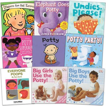 18 months & up. Help your children potty train with ease using these insightful Boys and Girls Potty Training Books for Home and Classroom. These books will give children confidence, encourage positive self-image and self-esteem, and help them learn to do things for themselves, including mastering toilet training. Potty training is natural for everyone, and these books will help your children build successful and consistent practices. Paperback and hardback combination. Set of 9.