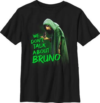 Join the Madrigal family for some magical and musical fun in the mountains of Colombia in Disney's hit film Encanto! This officially licensed Disney Encanto We Don't Talk About Bruno Boys' Graphic Husky T-Shirt features a graphic of a hooded Bruno Madrigal and a pet rat with the phrase "We Don't Talk About Bruno" in green front across the front. Grab this new boys' plus tee today and show your love for your favorite Disney movie!