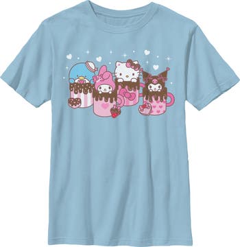 - Show off your impeccable taste with this stylish new boys' t-shirt that is perfect for every occasion! Featuring Hello Kitty and friends in pink cups printed across the front.