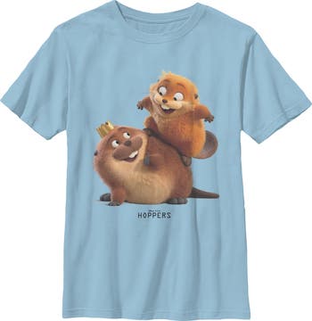 Run! Crawl! Swim! Fly! Meet this new officially licensed Hoppers graphic tee you didn't know you needed but absolutely do, inspired by the all-new Disney Pixar movie! This unique Boys' King George and Mabel Fun Graphic T-Shirt features Mabel happily perched on King George's back, with the official movie logo beneath them. Don't miss out on this incredible apparel. Grab yours today and carry a sprinkle of Hoppers magic wherever your journey takes you!