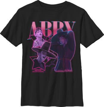 - Unleash your inner idol with this eye-catching boys' t-shirt perfect for concerts, hangouts, or everyday slaying! Featuring a colorful collage of Abby from K-pop Demon Hunters printed across the front.