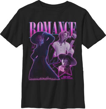 - Unleash your inner idol with this eye-catching boys' t-shirt perfect for concerts, hangouts, or everyday slaying! Featuring a colorful collage of Romance from K-pop Demon Hunters printed across the front.