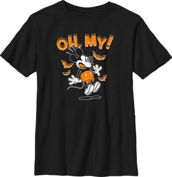 Who knew that dressing "mousey" could be so cute!? Celebrate Walt Disney's most iconic character with these officially licensed Mickey Mouse and Friends styles for the whole family! This fa-boo-lous Boys' Mickey Mouse & Friends Graphic T-Shirt features a retro version of Mickey Mouse scared by bats and the text: "Oh, My!" printed in matching orange lettering across the front. Grab some new Mickey and Friends apparel today and celebrate Halloween in style!