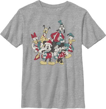 Who knew that dressing "mousey" could be so cute!? Celebrate Walt Disney's most iconic character with this officially licensed Mickey Mouse and Friends style! Featured on this Holiday Grup Boys' Tee is Mickey, Minnie, Donald, Daisy, Goofy, and Pluto dressed in holiday outfits. This tee will be great for your next Christmas!