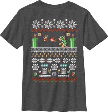 Boy's Nintendo Mario and Bowser Ugly Christmas Sweater Graphic T-Shirt