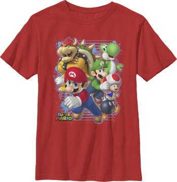 • Strut your stuff with this stylish new Boy's Tee Shirt that is perfect for every occasion! Featuring your favorite characters like Bob-omb, Bowser, Luigi, Mario, Toad, Yoshi.