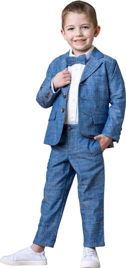 Our classic chambray suit pant is the perfect look for special occasions with the family or a trip to the beach. Features a zip fly, faux tortoiseshell button closure, adjustable inner waist for ideal fit and comfort, welt pockets at the back and functional slash pockets in the front. Keep it casual with one of our tees and button downs, or dress it up with our matching blazer!