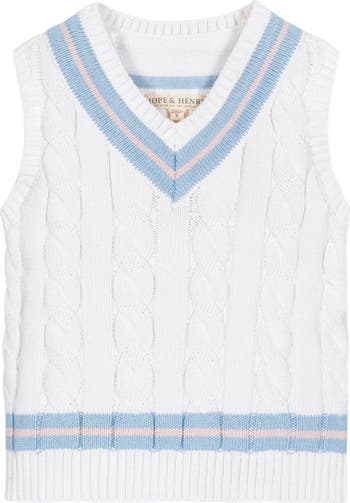 Our classic v-neck sweater vest silhouette is knit in soft organic cotton for the ultimate in comfort and style. Whether it's our all-season staple of solid color cable knit, or our more playful argyle intarsia pattern, this piece will be the perfect layering piece for your guy.