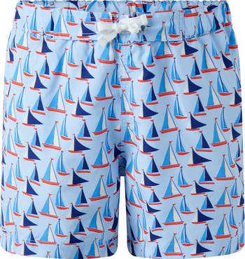 A bold, playful swim style designed for warm destinations and long summer days. Our Boys’ Sailboat Print Swim Trunks feature an all-over sailboat design on a soft blue ground, creating an instantly cheerful look for beach vacations, poolside afternoons, and spring-break escapes.
