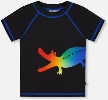 Boy's Short Sleeve Rashguard Black And Multicolored Crocodiles