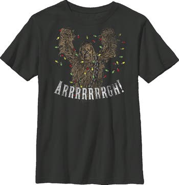 - Strut your stuff with this stylish new Christmas Boy's Tee Shirt that is perfect for every occasion! Featuring your favorite characters like Chewbacca.