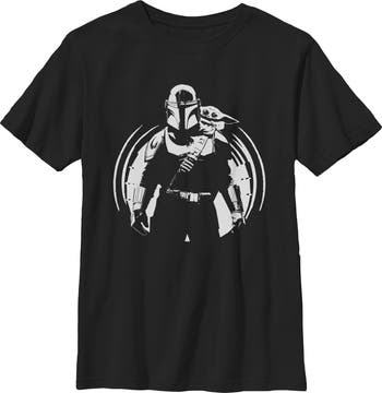- Experience the thrill of the galaxy with this new boys' t-shirt that is perfect for fans who know that "this is the way" to stay stylish! Featuring black-and-white artwork with Grogu nestled on The Mandalorian's back printed across the front.
