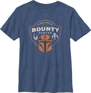 - Protect the galaxy with this boys' t-shirt that will look perfect alongside the New Republic! Featuring The Mandalorian's helmet and the phrase "Mandalorian Bounty Hunter" printed across the front.