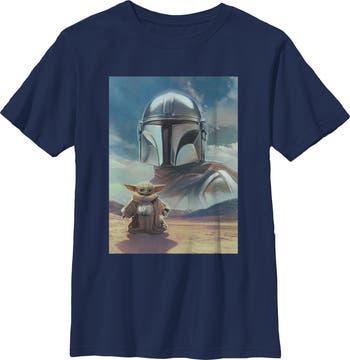 Boy's Star Wars The Mandalorian and Grogu Din Djarin and The Child Desert Poster Graphic T-Shirt