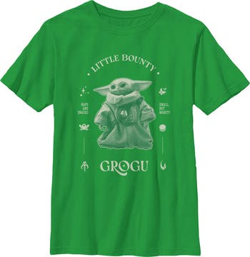 - Protect the galaxy with this boys' t-shirt that will look perfect alongside the New Republic! Featuring Grogu and the text "Little Bounty Grogu" printed across the front.