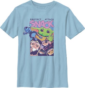 Boy's Star Wars The Mandalorian and Grogu Protect Attack Snack Collage Graphic T-Shirt