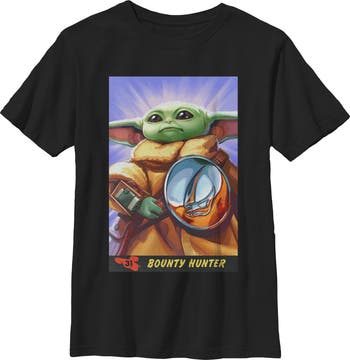 Boy's Star Wars The Mandalorian and Grogu The Child Bounty Hunter Comic Art Graphic T-Shirt