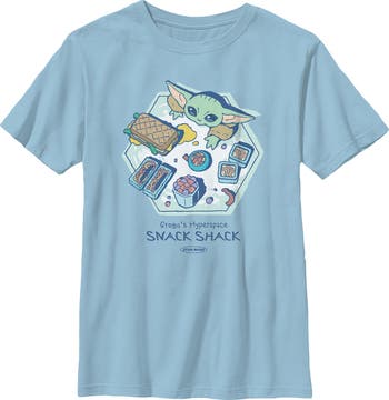 - Experience the thrill of the galaxy with this new boys' t-shirt that is perfect for fans who know that "this is the way" to stay stylish! Featuring a cartoonish illustration of Grogu surrounded by his favorite treats, including a sandwich, Batuu Bits, and more, with the statement "Grogu's Hyperspace Snack Shack."