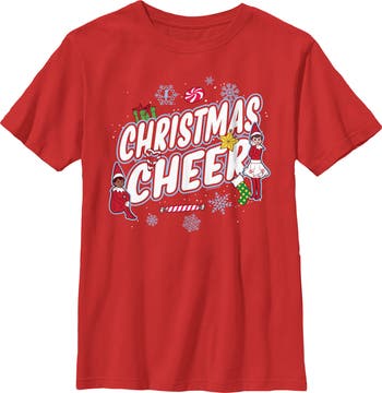 - Strut your stuff with this stylish new Christmas boys' t-shirt that is perfect for the holidays! Featuring two scout elves, candies, snowflakes, ornaments, and the phrase: "Christmas cheer" printed across the front.