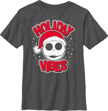 - Strut your stuff with this stylish new Christmas boys' t-shirt that is perfect for the holidays! Featuring Jack wearing a festive Santa hat and the phrase: "Holiday Vibes" printed in red lettering around him.