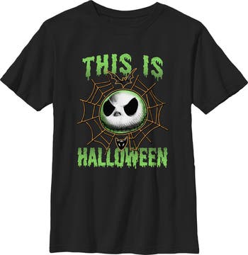 - Strut your stuff with this stylish new boys' t-shirt that is perfect for the scariest time of the year! Featuring Jack's face framed by orange spider webs and the iconic quote: "This Is Halloween" printed in slimy green font.