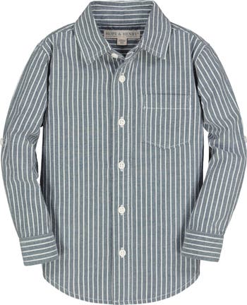 Hope & Henry Boys' Twill Button Down Shirt, Kids, Main, color, Light Navy Railroad Stripe