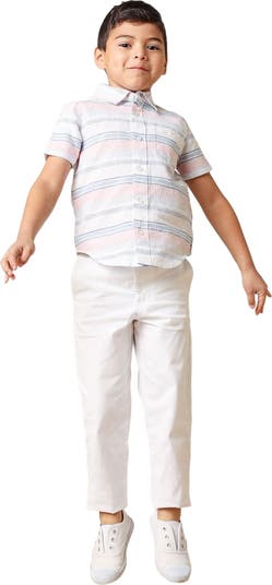 Our modern fit chino will be the one your boy reaches for every day, on special occasions and trips to the playground alike. Features our soft organic cotton twill with a carbon-brushed finish, faux tortoiseshell button, back welt pockets, and an adjustable inner waistband for ultimate comfort and superior fit. These classic pants are sure to be worn, loved, and passed down again and again!