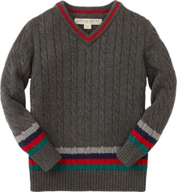 Hope & Henry Boys' V-Neck Cable Sweater, Kids, Alternate, color, Grey