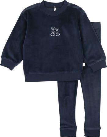 Cozy up in the Velour Bunny Set in Blue, made from our best-selling velour fabric for ultimate softness. This playful set features an adorable embroidered bunny and ribbed cuffs for a snug, comfy fit. Perfect for lounging or bedtime, it’s a sweet way to stay comfy and cute all day long!