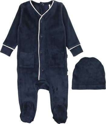 Slip into the Velour Footie in Navy, made from our best-selling velour fabric for ultimate softness. With chic white trim and convenient snaps for easy opening, this footie blends cozy comfort with classy style—perfect for lounging in style all day or night!