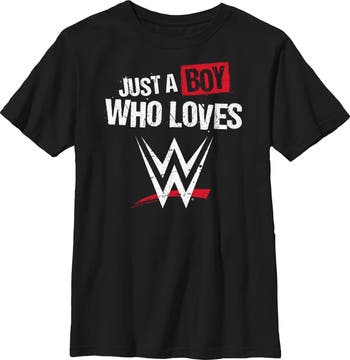 - Strut your stuff with this stylish new boys' husky graphic t-shirt that is perfect for every occasion! Featuring the phrase "Just A Boy Who Loves WWE" printed in distress across the front.