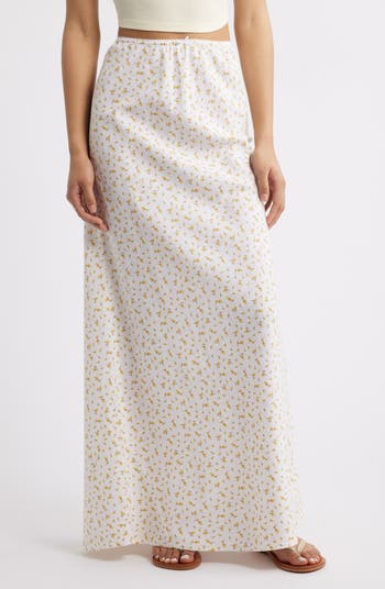 A breathable cotton blend lends breezy comfort to this paradise-ready maxi skirt detailed with a bitty bow on the picot-trimmed waist.