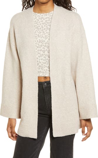 The perfect grab and go cardigan—or grab and stay in—this sweater is knit in a layer-ready fit from soft yarns that are warm and lightweight.