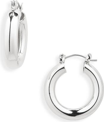 A modern tubular design and polished sterling silver–dipped finish will have these huggie hoop earrings in high rotation.