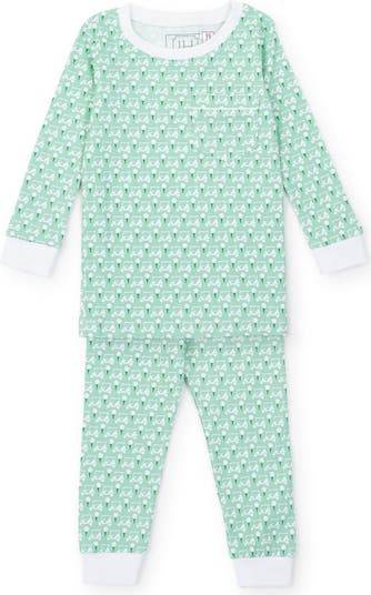 Pima cotton long sleeved pajama top and pant set. Pants have an elastic waistband and the long sleeved top has a pocket with white piping. Made from 100% Peruvian Cotton. For child's safety, garment should fit snugly. This garment is not flame resistant. Loose fitting clothing is more likely to catch fire.