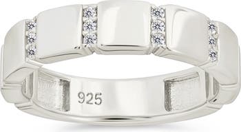 Lines of cubic zirconia are inset on these sterling silver band ring to create glittering dimension.