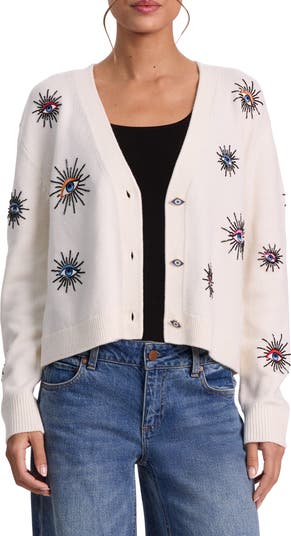 Keep all eyes on you in this woolly close-fititng cardigan detailed with intricate beading.