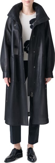 Prevent the rain from ruining your outfit without preventing the world from admiring it with this translucent raincoat tagged with signature trapezoid zipper pulls.