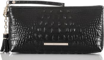 Glazed, croc-embossed leather and an optional wrist strap intensify the day-to-evening versatility of a trim pouch that can serve as a wallet, chic clutch or wristlet.
