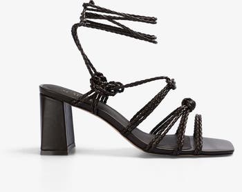 Heeled sandals. Made of leather. Rear strap fastening. Rubber sole.