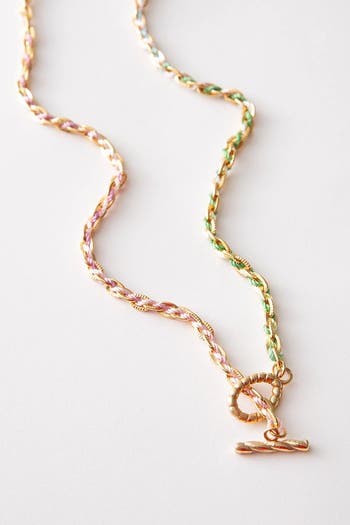 Gold-plated brass and silk-blend cord come together in this elegant mixed-material necklace that feels both classic and contemporary. The chunky toggle clasp can be styled in front for a modern twist or worn in back for a more traditional look, making it a versatile piece you’ll reach for again and again.