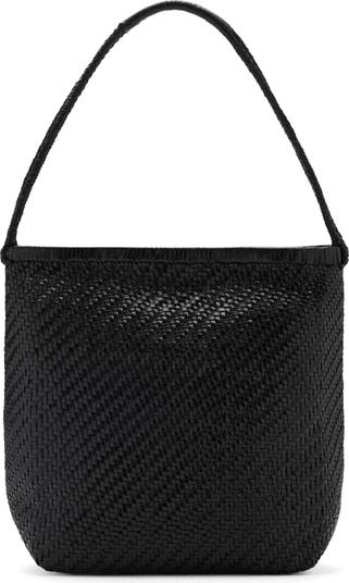 Intricately braided leather and a spacious profile define an everyday shoulder bag outfitted with a pair of straps and a magnetic closure to keep your items secure.