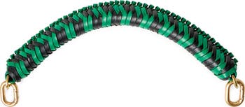 Add a pop of color and textural element to your favorite bag with this braided top handle made from two-tone leather.
