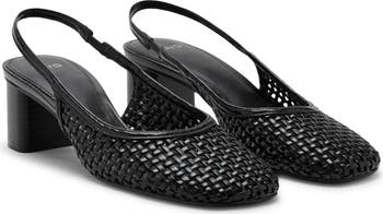 Elevate your ensemble with this block heel-pump made with a woven faux-leather upper and secured with a stretchy slingback.