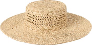 Roam your resort town in this lightweight straw sun hat highlighted by an open weave at the top for added ventilation.