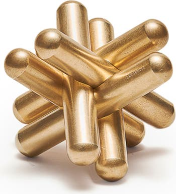 A clatter of smooth brass pieces lends elegant polish to a jack-inspired puzzle that satisfies fidgety fingers and doubles as a stunning, modern paperweight.