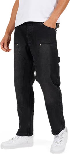 Elevate your casual style with these Long Length Carpenter Loose Fit Denim Jeans. Designed for men, these jeans feature stylish knee patches and carpenter pockets. With a subtle charcoal wash, loose fit and extra length, you can experience comfort and style all in one with this staple piece.