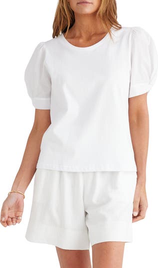 A jersey bodice and woven sleeves create a lovely mood for this wear-everywhere cotton top.