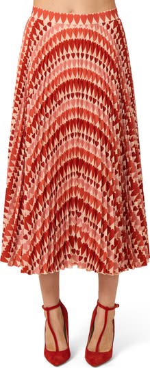 Heart print pleated midi length skirt in soft polyester fabric.